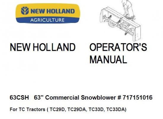 New Holland 63CSH 63″ Commercial Snowblower Operator’s Manual