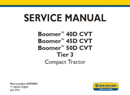 New Holland Boomer 40D CVT , Boomer 45D CVT , Boomer 50D CVT Tier 3 Compact Tractor Service Repair Manual