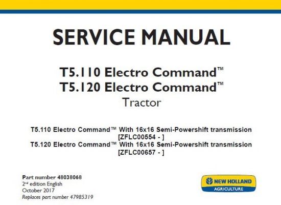 New Holland T5.110 Electro Command, T5.120 Electro Command Tractor Service Repair Manual (NA)