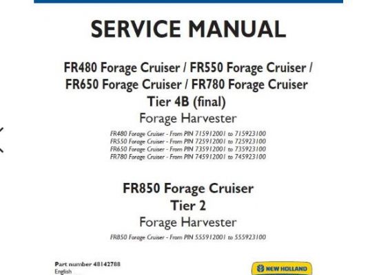 New Holland FR480 / FR550 / FR650 / FR780 Tier 4B (final) , FR850 Tier 2 Forage Cruiser Service Repair Manual (NA)