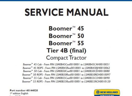 New Holland Boomer 45, Boomer 50, Boomer 55 Tier 4B (final) Compact Tractor Service Repair Manual