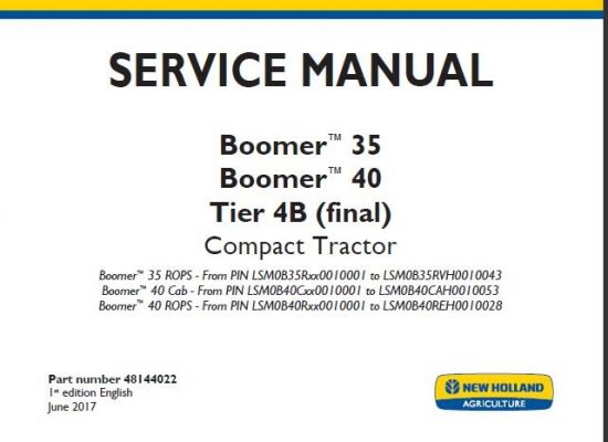 New Holland Boomer 35 , Boomer 40 Tier 4B (final) Compact Tractor Service Repair Manual
